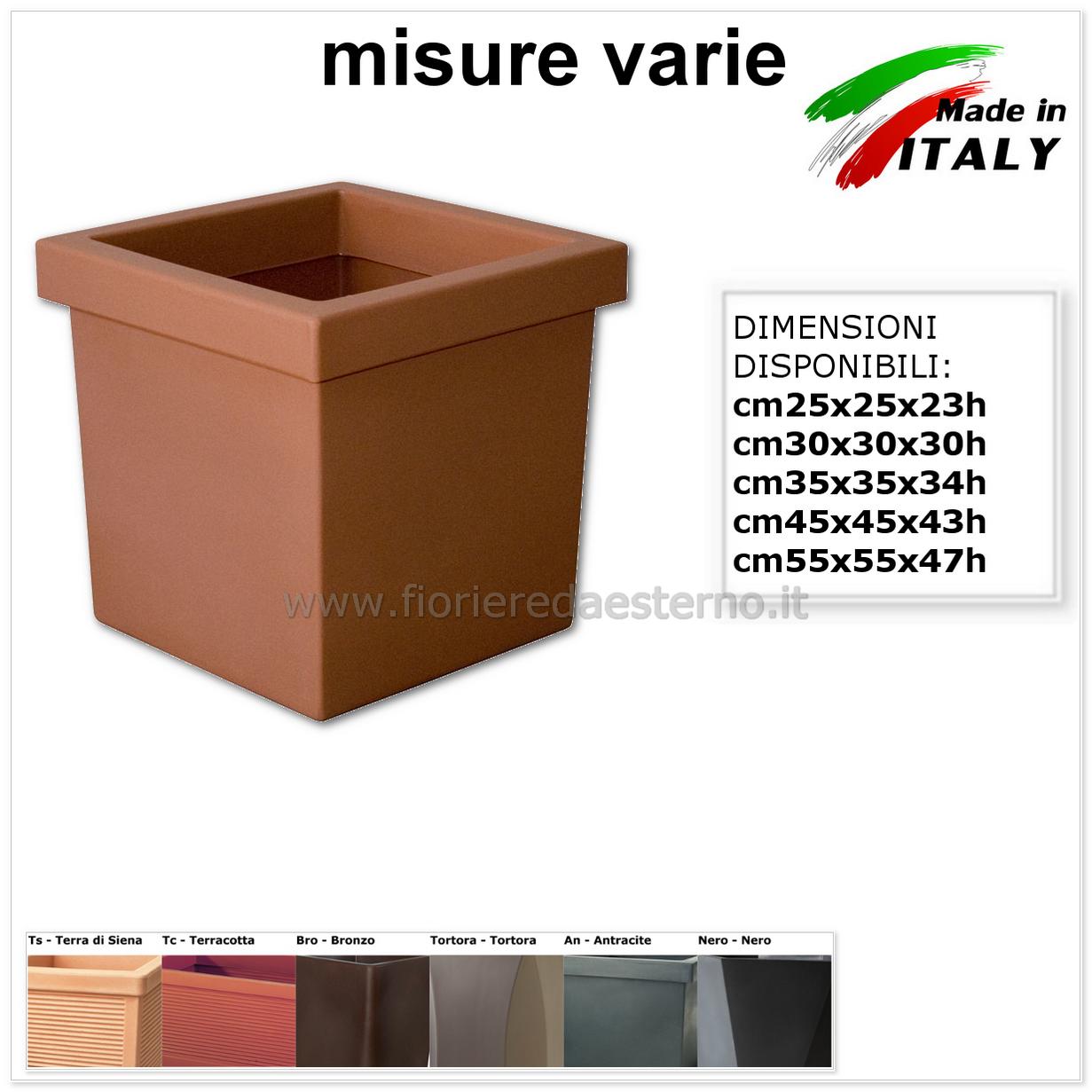 Fioriere in plastica gemini quadrato liscio da cm25 a cm55 nei vari colori polietilene linea TEIPLAST – VASI ROTAZIONALI DI ALTA QUALITA’.