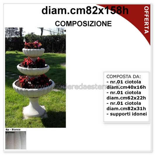offerte vasi in cemento ciotole margherita composizione completa di 3 ciotole e supporti idonei.